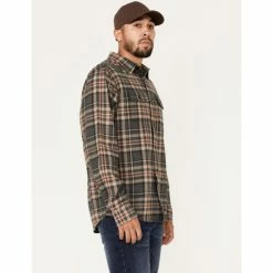 Discount 👏 Brothers & Sons Men’s Everyday Dark Green Plaid Long Sleeve Button-Down Western Flannel 👕 Shirt 🔥