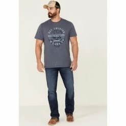 Best Pirce 😉 Brothers & Sons Men’s Mercentile Weathered Slub Graphic Short Sleeve T-Shirt Blue 🛒