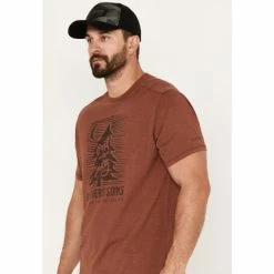 Discount 😀 Brothers & Sons Men’s Mountain Base Embroidered Short Sleeve Graphic T-Shirt Dark Brown 🎉